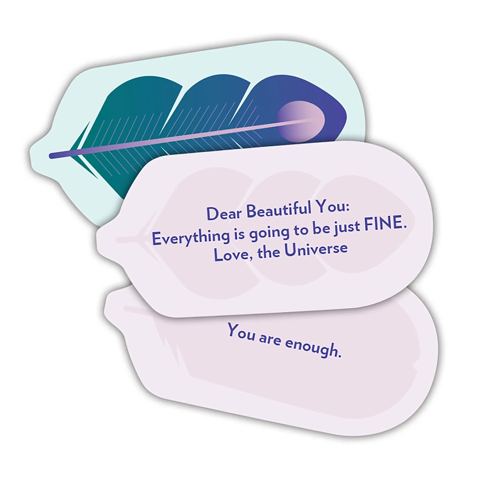 • 75 feather-shaped messages filled with reassurance and self-care