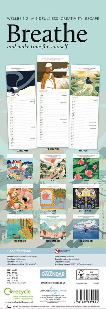 Breathe - 2026 Slim Wall Calendar